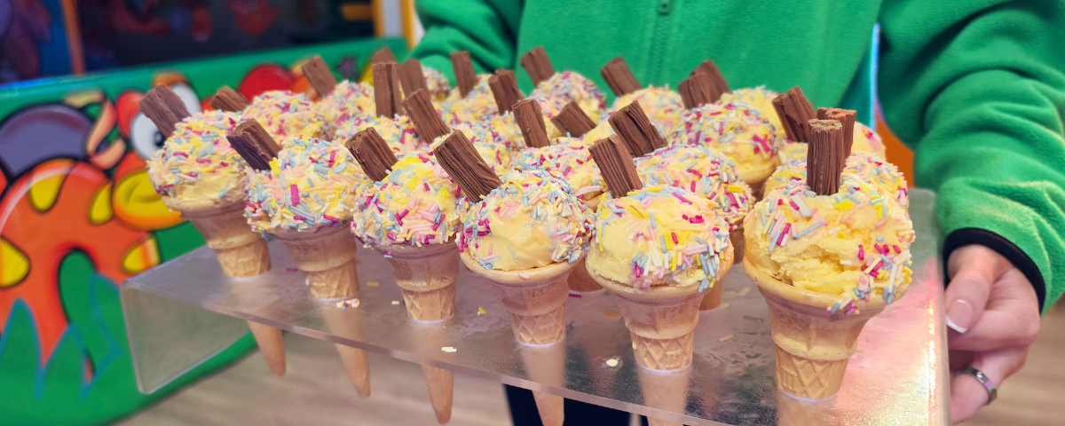 Great value and available throughout the day. Party food is served in our downstairs party room, with reserved tables for grown-ups in the main café.