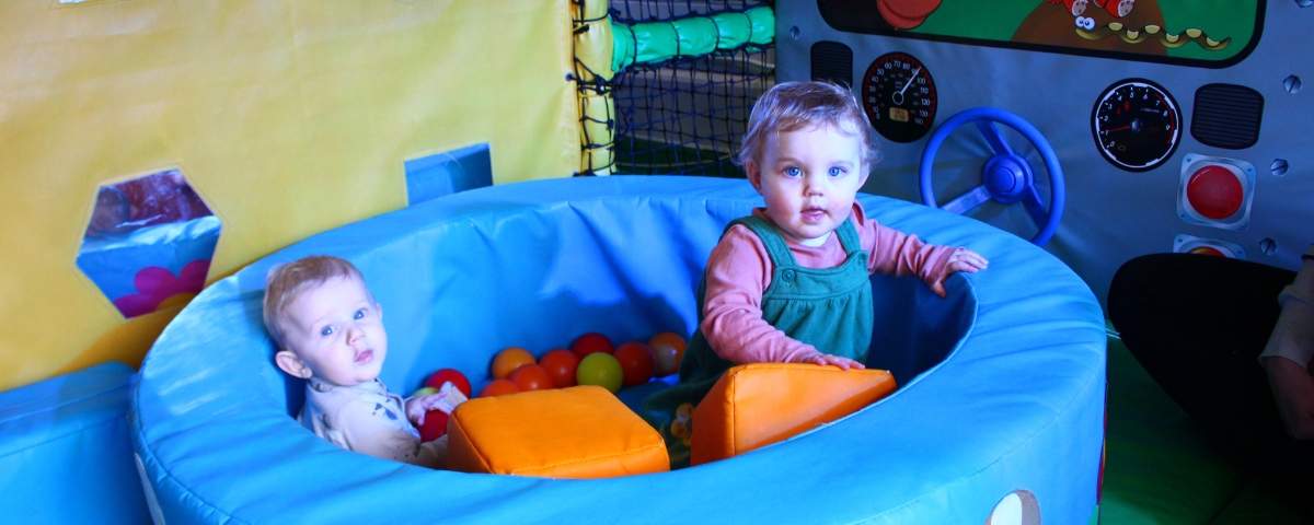 A quiet, cushioned zone for the littlest guests with soft mats, toys and flooded with natural light.